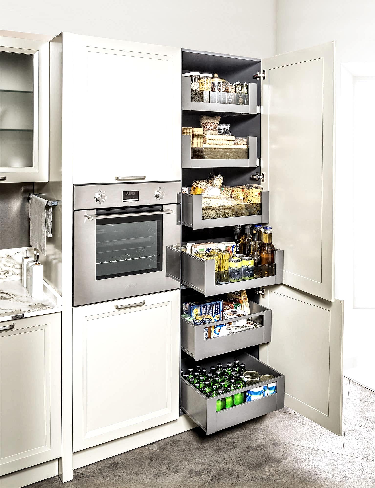 Dolap kapaklarıyla uyumlu çekmece ve kilit sistemlerine sahip Verde Mutfak, modern yaşamın konforunu ve kolaylıklarını mükemmel bir estetikle birleştiriyor. Farklı ebat ve hacimlerdeki depolama alanlarıyla öne çıkan ve 360 derece hareket edebilen ada ünitemizle tanışmak için bizi ziyaret edin.